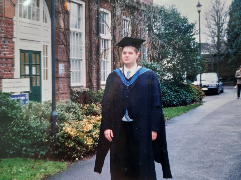 Jeg var også tilbake til Reading en kort tur for å motta mitt vitnemål i en tradisjonell graduation seremoni desember 2003, etter det gikk det hele 12 år før jeg fikk kommet tilbake.