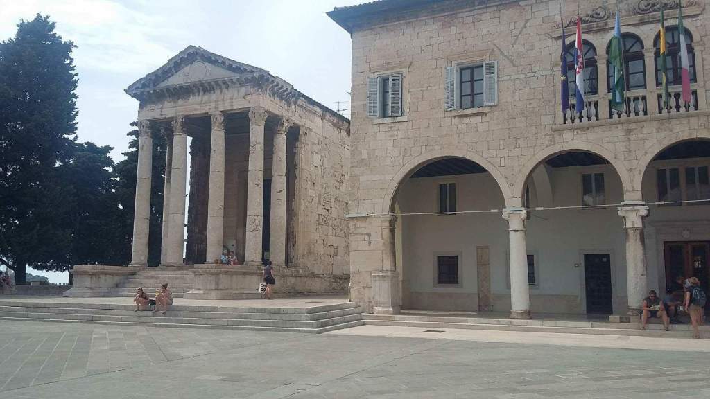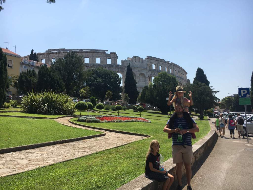 Den siste dagen skulle vi fly hjemover sent på ettermiddagen fra Pula flyplass. Pula er den største byen på Istria. Vi måtte derfor se Pula. Pula er kjent for sine romerske byggverk. Det aller mest kjente av disse er det romerske-amfiteatret som er det sjette største i verden. Byen har også et flott romersk tempel og flere mindre romerske ruiner.