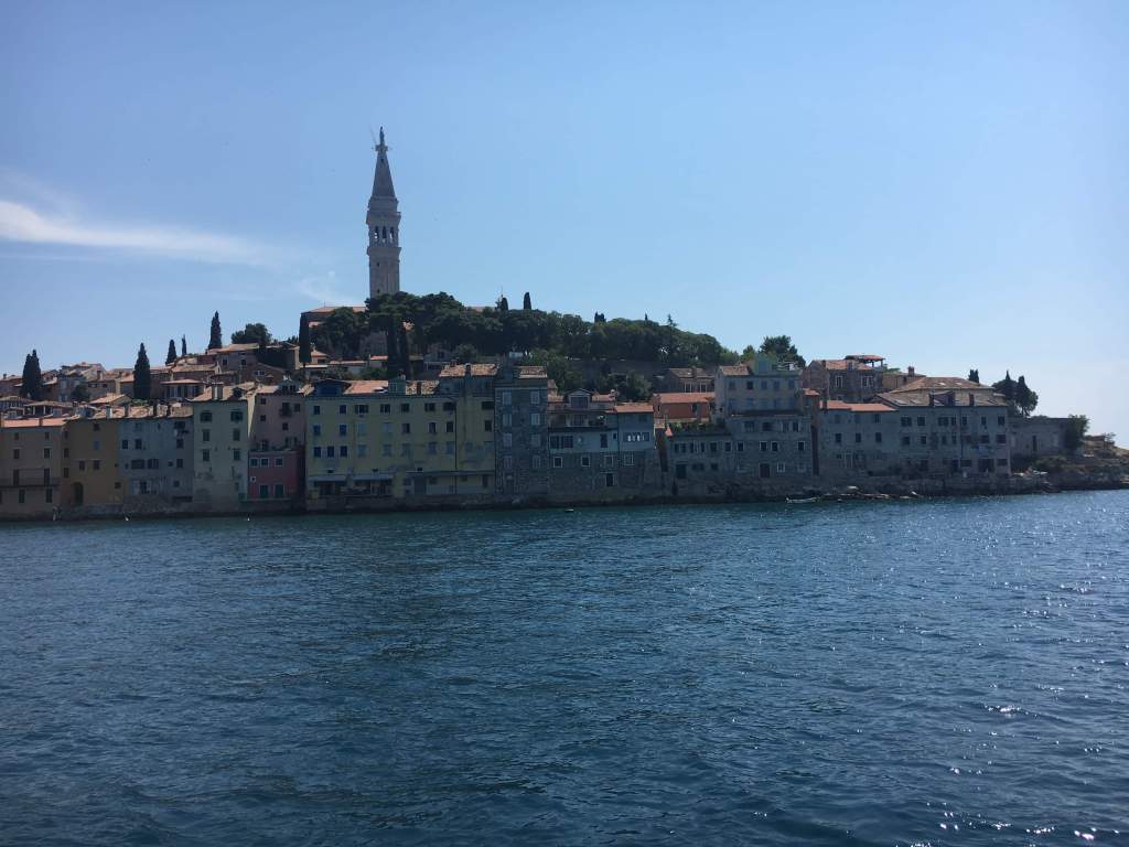 Foruten dette fikk vi tatt to dagsturer med en ti minuters båttur til Rovinj. Rovinj er en landsby med historie tilbake til Romertiden. Landsbyen bærer kanskje mest preg av dens Venetianske underlemmelse. Landsbyen er svært sjarmerende, der gamlebyen ligger på en halvøy med en kirke øverst på høyden.