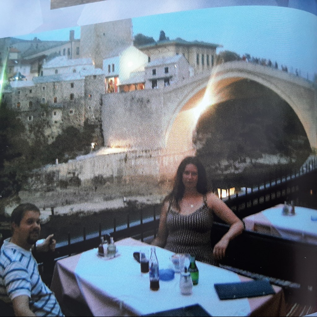 På vei tilbake på ettermiddagen stoppet vi ved byen Mostar. Det kanskje mest kjente ved Mostar er broen som hadde blitt sprengt i borgerkrigen. Da vi var der var der var broen bygd opp ganske nylig. Vi benyttet anledningen til en god middag ved en koselig restaurant med utsikt over broen. Byen bar store preg av byen og flere bygninger hadde store merker etter kulehull fra skuddvekslinger. Dette var en spesiell opplevelse med sterke inntrykk.